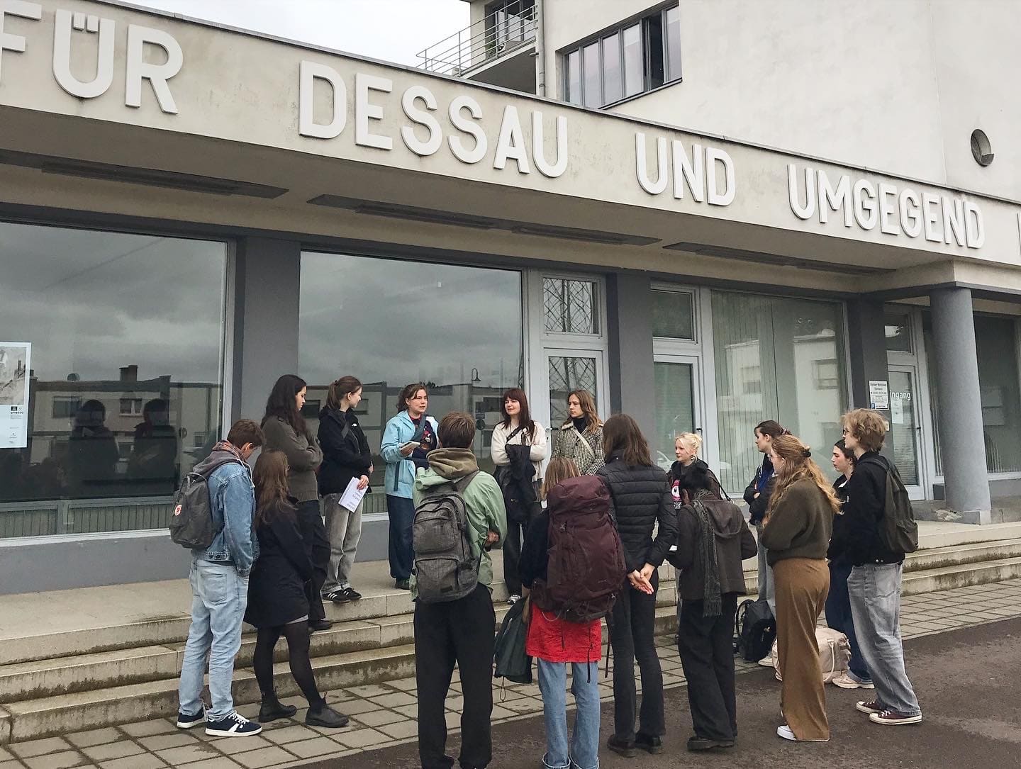Seminars have included visits to key Berlin venues such as Hamburger Bahnhof, Bode-Museum, Martin-Gropius Bau and KW Institute, and an exploration of contemporary art production at E-Werk Luckenwalde. We have also undertaken deep dives into the experimental legacy of the Bauhaus, from the iconic sites in Dessau to the material practice of weaving at the Margaretha Reichardt Haus near Erfurt. This approach is enriched by direct dialogue with practitioners. Past seminars have featured intensive exchanges with a diverse range of Berlin-based artists (including Jeanne Fredac, Ila Wingen, Katrin Salentin, Maria Korporal ➜ (Link), Aykan Safoğlu, Claudia Hartwig, and Sooki Koeppel), leading curators (Carolin Köchling, Martin-Gropius-Bau), and archivists (Jeanette Stoschek, MdbK Leipzig), providing students with firsthand insights into the professional fields of art production and curation.
